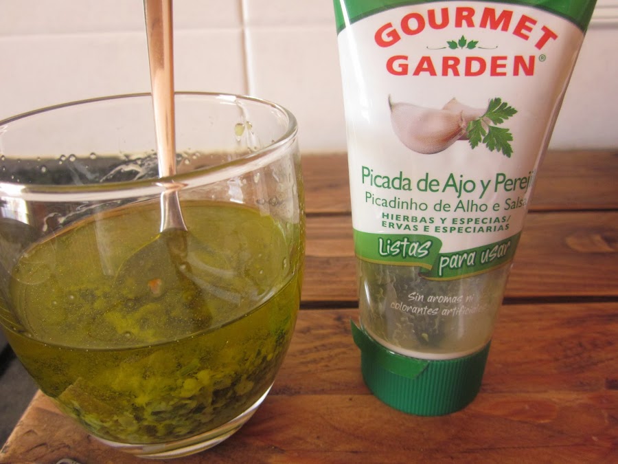 La primera a probar ha sido la picada de Ajo y Perejil, la he puesto en un poco de aceite para untar en los filetes de pollo o pescado a la plancha.