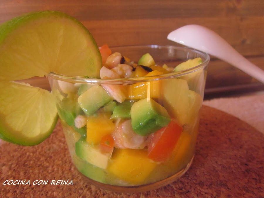 He probado el chile en estos vasitos de falso Tartar de Gambas que hice,donde se necesitaba un poco de picante.