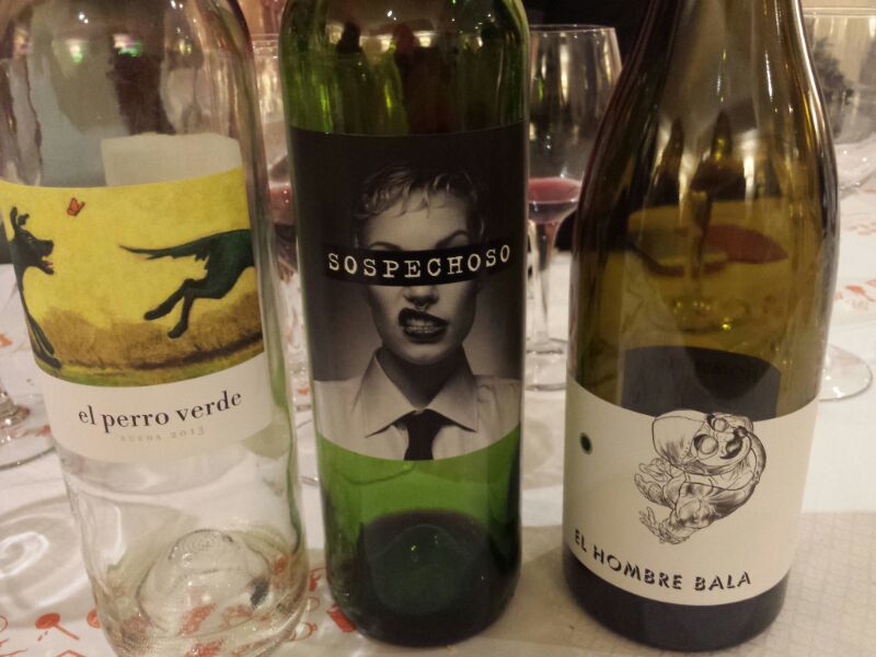 Pudimos disfrutar con los vinos de Uvas Felices, El perro Verde (D. O. Rueda), El hombre bala (D.O. Vinos de Madrid) y Sospechoso (VT Castilla).