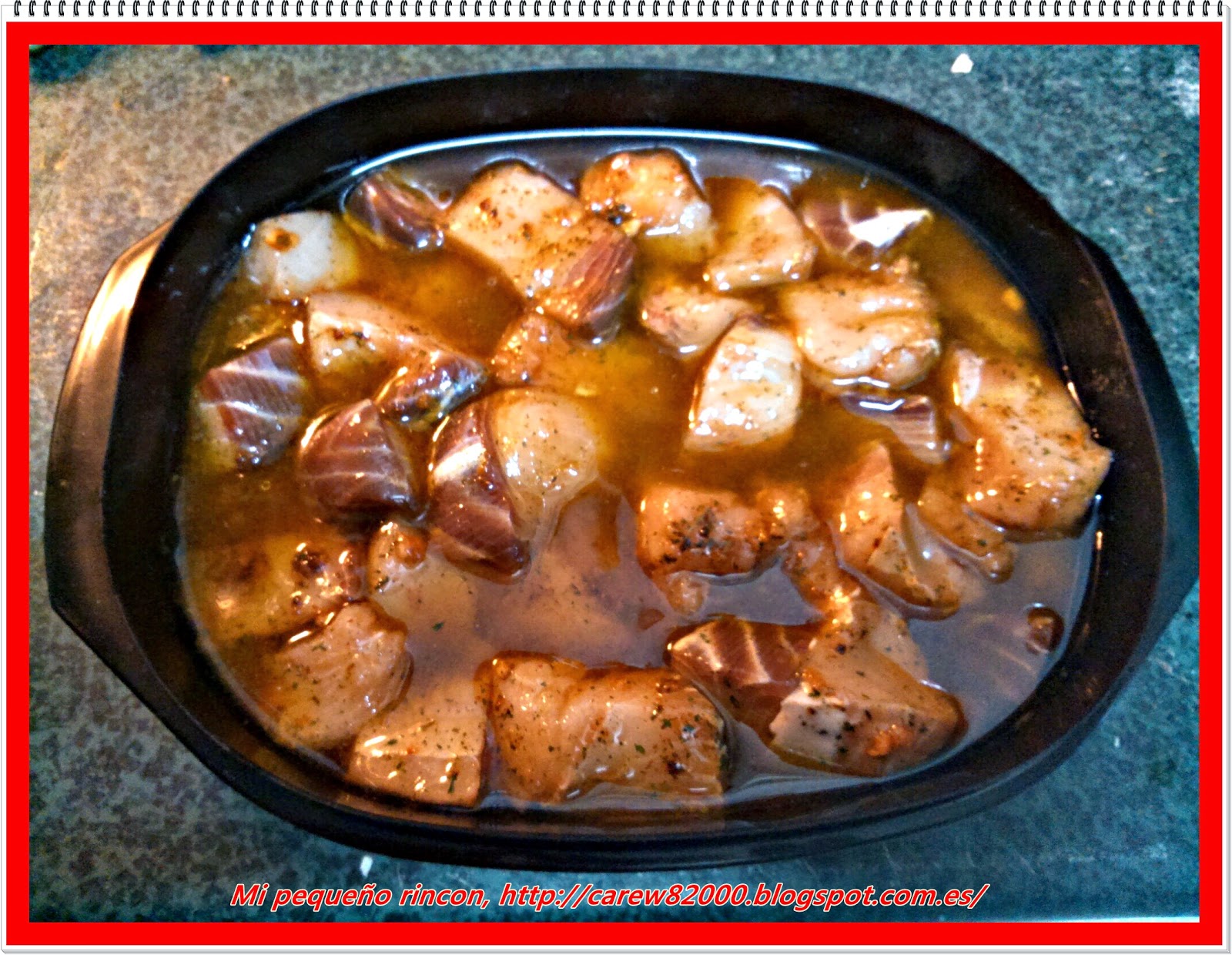 Lo ponemos en un bol y a continuación hacemos el adobo, para prepara el adobo os dejo el enlace del blog donde dice paso a paso como hacerlo.