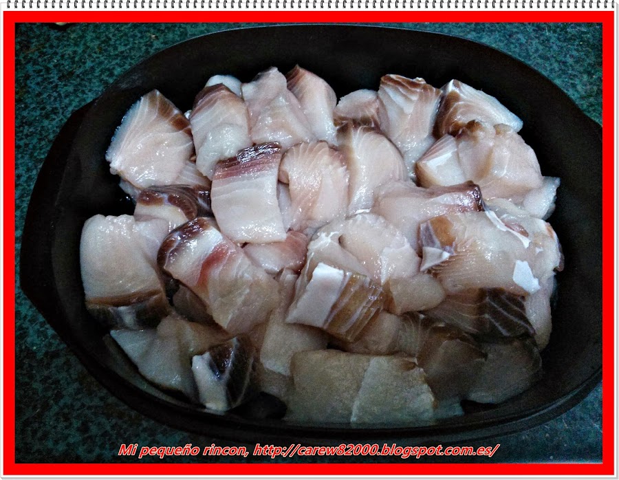 Lo primeo será cortar el pescado trozos pequeños no demasiado grandes y siempre del mismo tamaño.