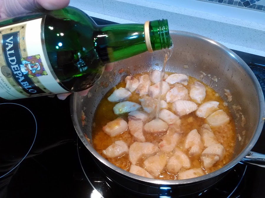 He utilizado vino de guiso Valdepablo ideal para cocinar y ha quedado estupendo. Añadiendo un chorrito, da un toque especial con un suave aroma de hierbas aromáticas en todo tipo de carnes, pastas, legumbres y en éste caso en