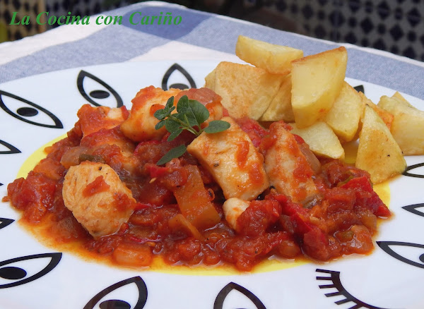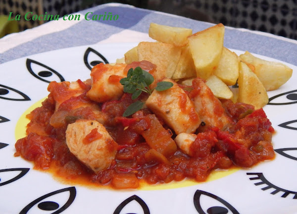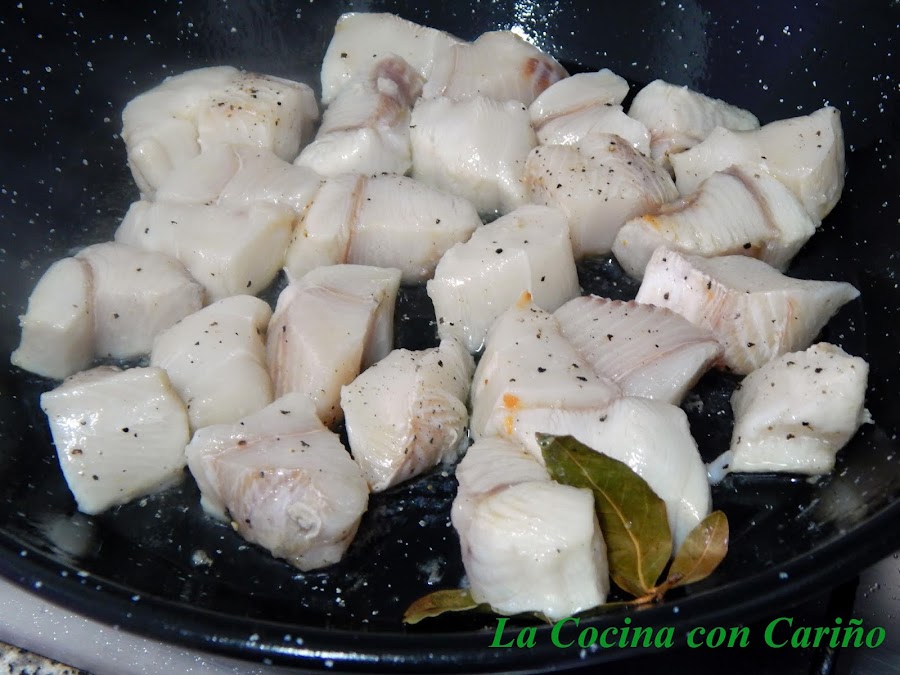 Una vez nuestro tomate está listo, en una sartén salteamos nuestros trozos de cazón y cuando tomen color, los pasamos al tomate. Dejamos cocer todo por unos 3 ó 4 minutos. Sin comentarios