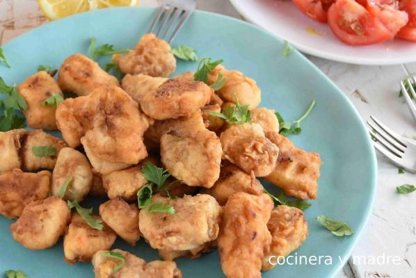 Pasado este tiempo escurrimos el pescado y lo pasamos por harina; quitamos el exceso de esta y freímos en abundante aceite caliente, que quede dorado.