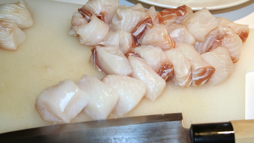 Corta el cazón en trozos pequeños y colócalos en un bol o súper que puedas guardar en el frigorífico.