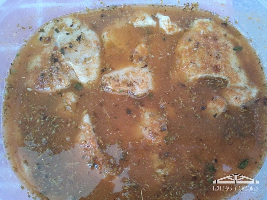 Una vez pasado el tiempo de maceración, se sacan cada trozo y se deja escurrir bien en papel absorbente.