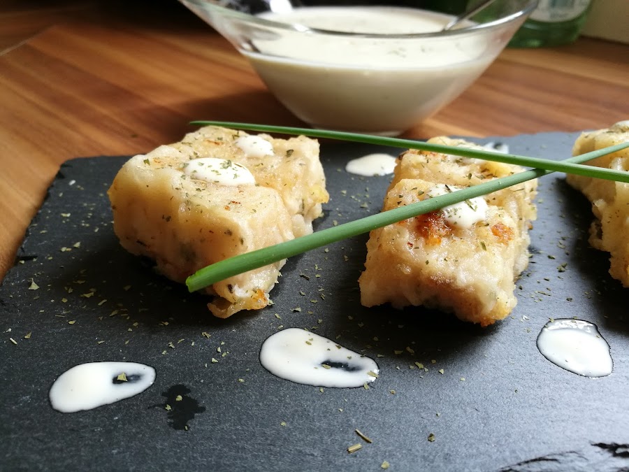 - Con una parte del líquido del adobo, añadimos un huevo y aceite en hilillo mientras batimos con la batidora eléctrica, para hacer una mayonesa.