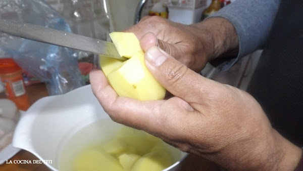 1º Pelamos las patatas y las cortamos cascandola