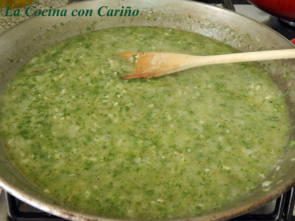 Un ramillete de perejil, cortado muy pequeñito. Hacemos una muñequilla con el perejil y le damos una sesión de corte con el cuchillo afilado y listo.