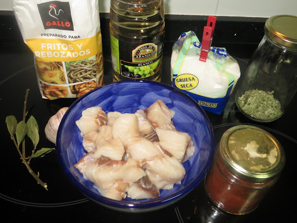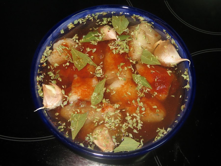 Lo primero que hacemos es limpiar el pescado, lo más sencillo es decirle al pescadero que os lo limpie y os lo ponga para freír. Luego una vez en casa le dais un nuevo repaso por si le han dejado algún huevo o alguna telilla y se la quitáis. Ahora llega el momento de preparar el adobo, echáis el pescado en un bol y le añadís un puñado de sal, los cuatro ajos sin pelar, pero un poco golpeados, el orégano, el comino, el pimentón dulce y las hojas de laurel rotas. Lo tapáis y lo metéis a la nevera un mínimo de ocho horas, aunque es mejor de un día para otro.