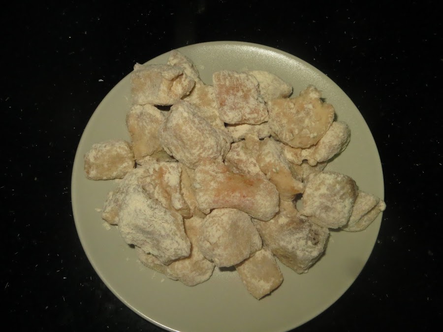 Una vez pasado este tiempo, lo sacáis, lo secáis con un papel, lo rebozáis en harina y lo ponéis a freír en aceite caliente. Lo sacáis, le quitáis el exceso de aceite y ya está listo para servir os aconsejo que lo acompañéis con una cervecita bien fresquita.