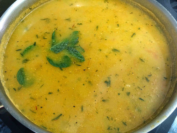 Apagamos el fuego y dejamos reposar unos minutos añadiéndole la rama de hierbabuena.