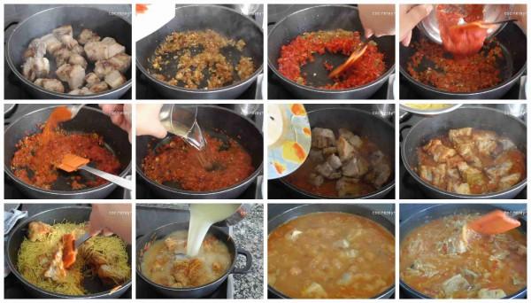 Incorporamos de nuevo las costillas que teníamos reservadas, y los fideos y rehogamos durante 1 minuto.