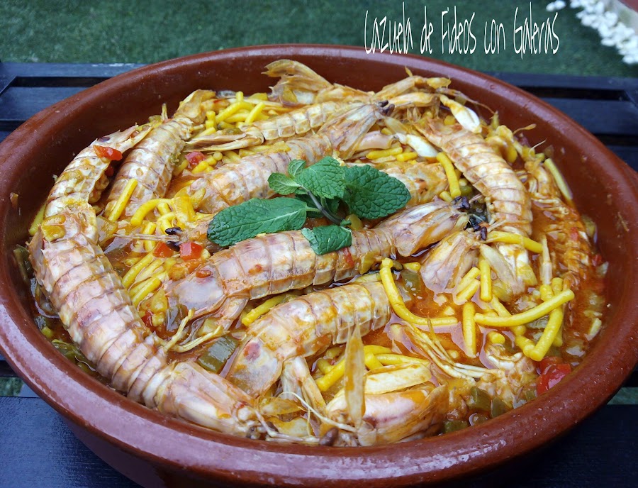 Por fin estoy de vuelta! Después de una temporada muy liada y solucionar unos problemas con el ordenador... ya estoy aquí! Y que mejor manera de hacerlo, que volver con esta Cazuela de fideos con galeras. Un plato típico marinero de mi localidad, Sanlúcar de Barrameda y que está para chuparse los dedos.