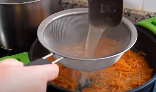Pasados esos minutos echamos el caldo previamente colado hasta que los fideos queden bien cubiertos.