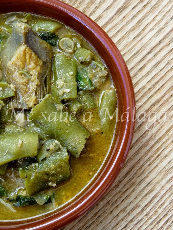 Este plato es típico de un pueblo de Málaga llamado el Valle de Abdalajís. Se trata de una cazuela de verduras en la que las habas son las protagonistas pudiendo ir acompañadas de alcachofas y lechuga malagueña. También se le puede incorporar un buen puñado de chícharos (guisantes) y queda exquisita.