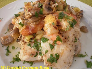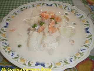 Me la prepara como yo le indico, en esta ocasión de forma que con la cabeza, a la que le quita cuidadosamente la ?cococha? para poder disfrutarla aparte, y la cola preparo un EMBLANCO (la receta AQUI)
