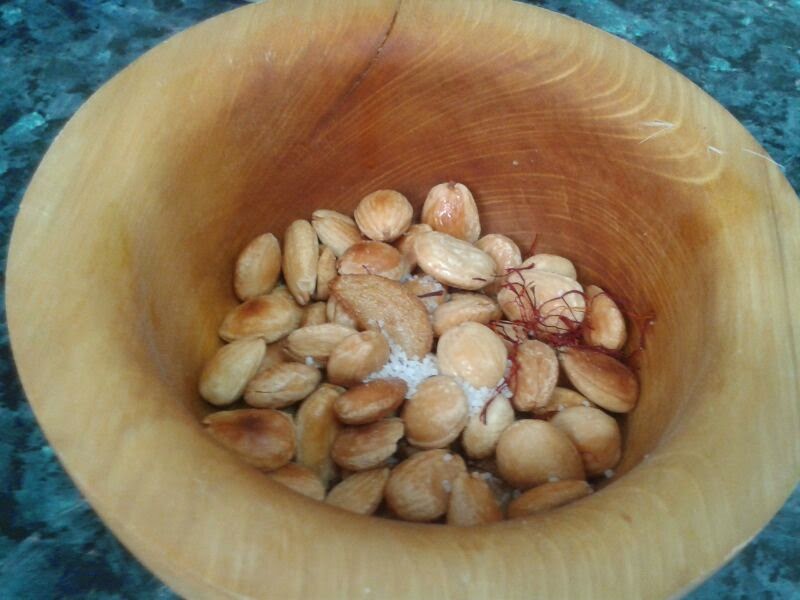Ponemos el azafrán en el mortero y añadimos un poco de sal gorda. Esperamos a que se enfríe para hacer el "majaíllo".