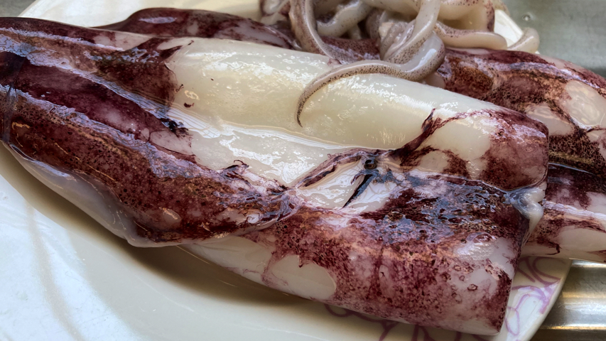 Limpia el calamar y trocéalo. Esto te lo pueden hacer en la pescadería.