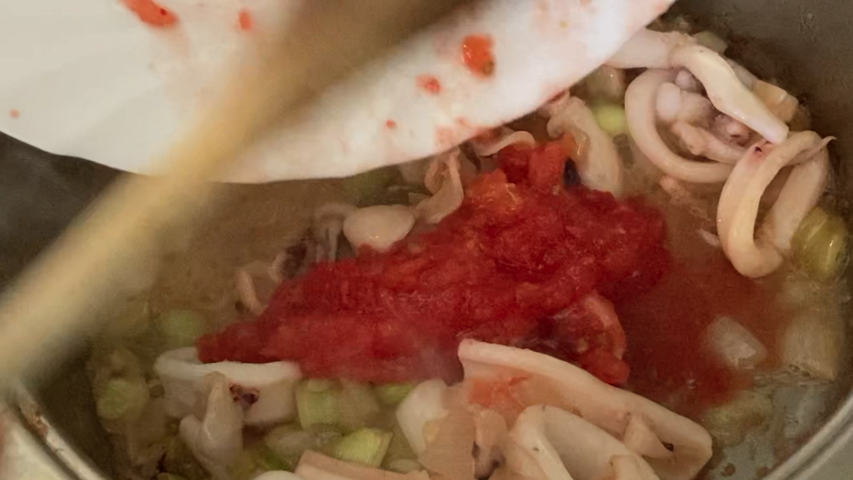 Cuando el aceite esté caliente añade el calamar troceado y saltéalo.