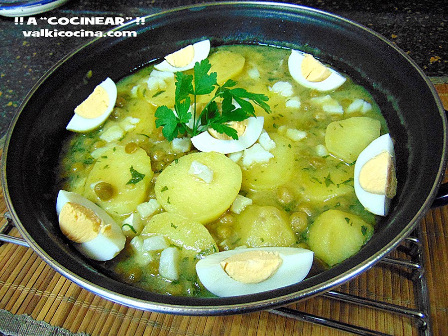 Te dejo otra rica variante, para que tengas donde elegir y no caigas en la rutina: "Patatas en salsa verde con guisantes y bacalao" ( ver aquí )