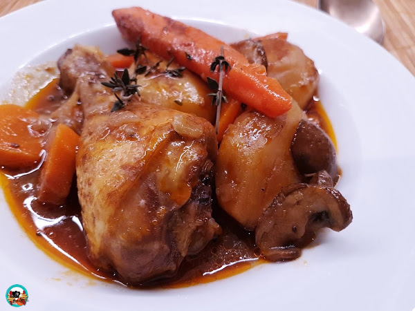 ¡Hoy traigo un plato para chuparse los dedos! Esta cazuela de muslos de pollo con verduras es ideal para comer con pan y marinar con una copa de vino.