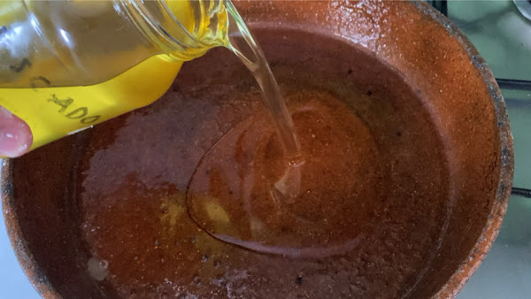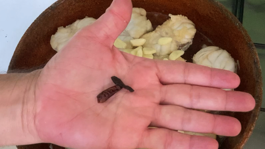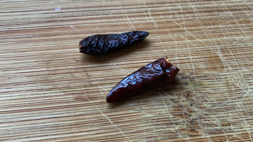 Incorpora los ajos y las cayenas partidas por la mitad.