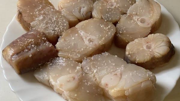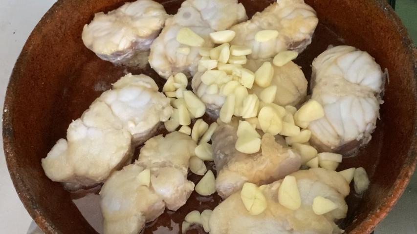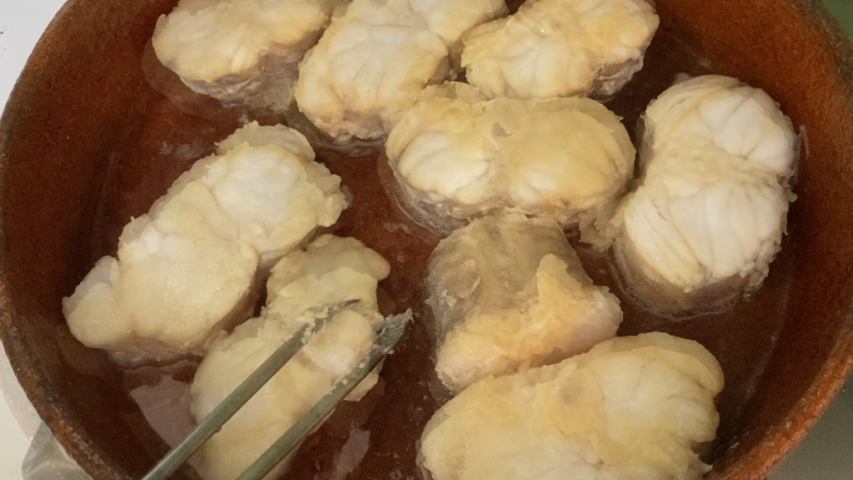Dora las rodajas de pescado por una cara. Dales la vuelta y dóralas por la otra cara.