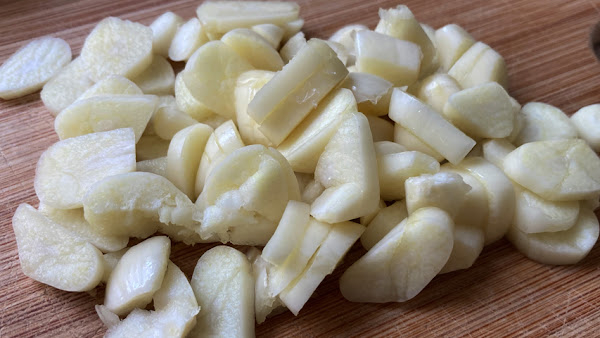 Pela las patatas y córtalas en bastones. Reserva hasta el momento de freírlas.