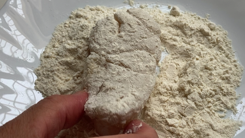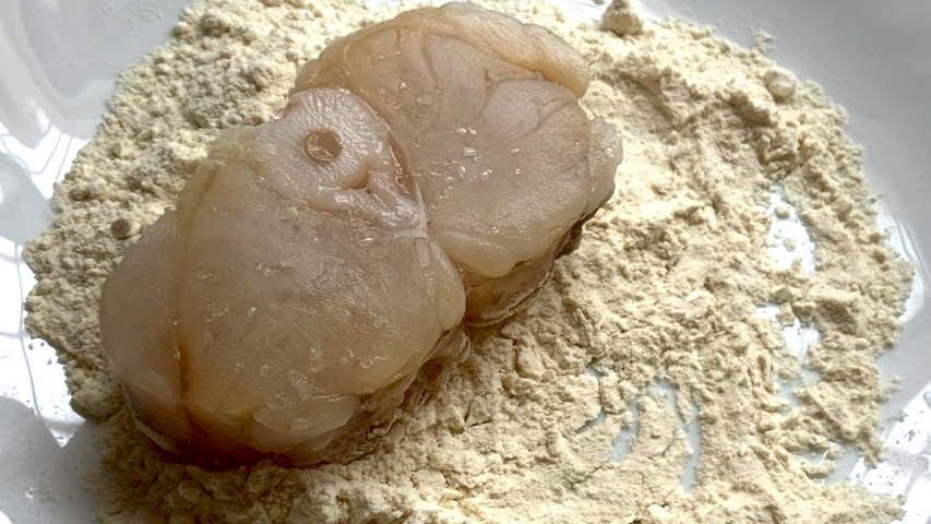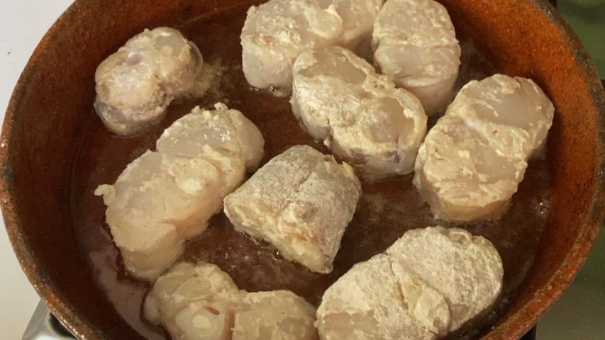 Embadurna las rodajas de rape con harina pero no demasiada.