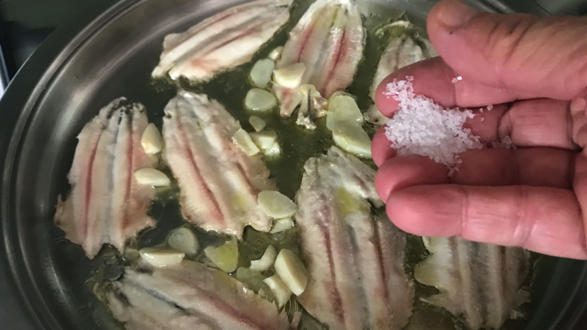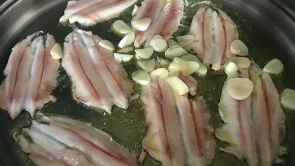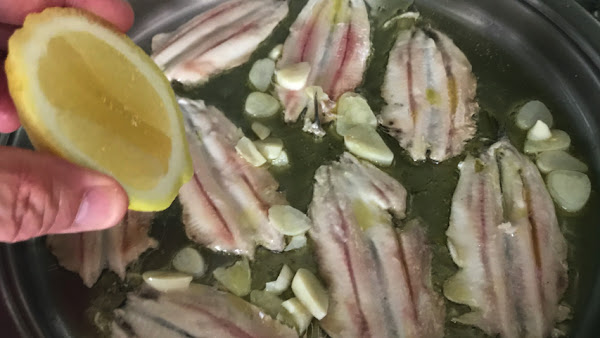 Coloca los boquerones sobre el aceite (aún con la cazuela fuera del fuego).