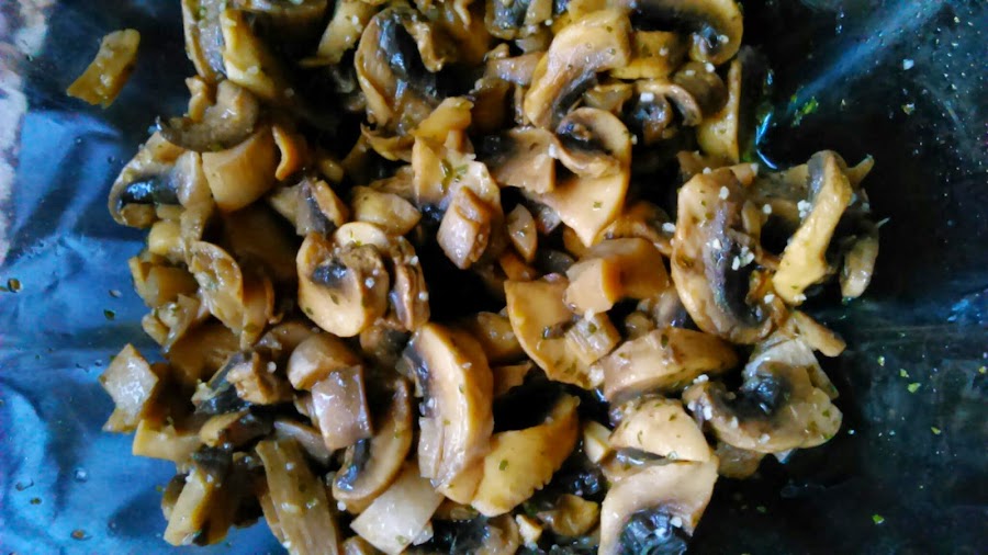 -pizca de salTroceamos los champiñones limpios y los ponemos en un bol de cristal. Añadimos el aceite, el perejil, el ajo y la sal. Mezclamos e introducimos en el microondas 5 minutos a máxima potencia. Removemos y metemos 2 minutos más. (Como siempre dependerá del microondas, vamos probando...) Dejamos que se enfríen.