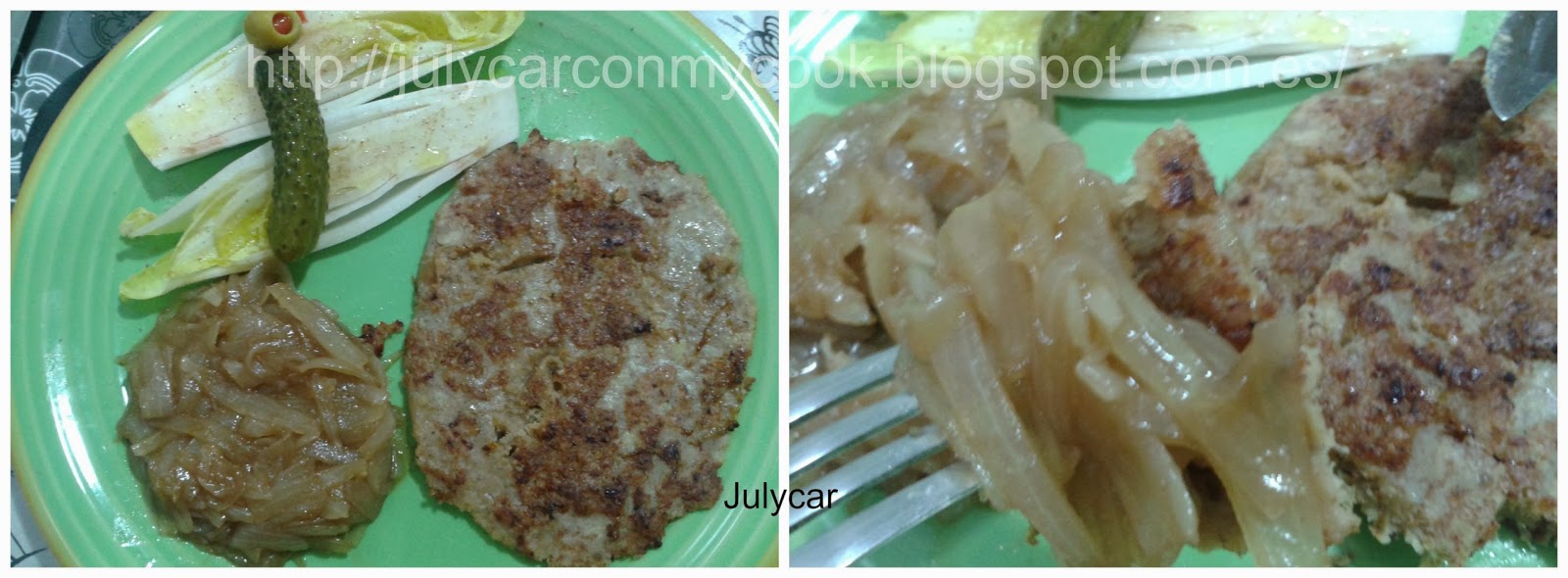 Poner en la cubeta de la GM E la cebolla y el aceite, remover bien, tapar con válvula cerrada, programa menú presión vapor, 130º, alta presión (3) cuando termine despresurizar manualmente, abrir y añadir el rsto de ingredientes, programar menú plancha tapa abierta, ir removiendo de vez en cuando, hasta que reduzca todo el liquido (no consume el tiempo) cuando este, cancelar la olla y ya la tenemos lista para comer acompañada en este caso de un filete empanado vegetal buenísima