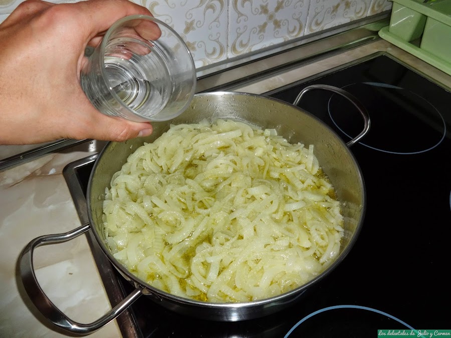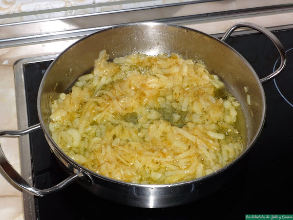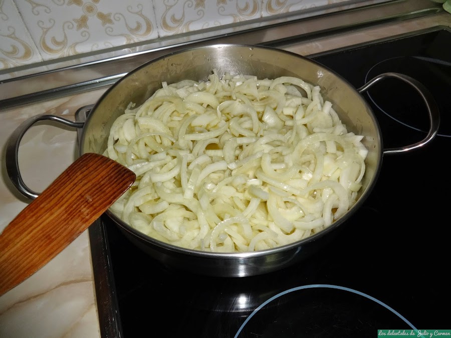 Echamos la cebolla y removeremos de vez en cuando para que las cebollas se vayan haciendo igual por todos los lados.