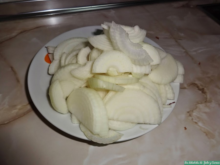 Lo primero, cortaremos las cebollas en juliana y reservamos.