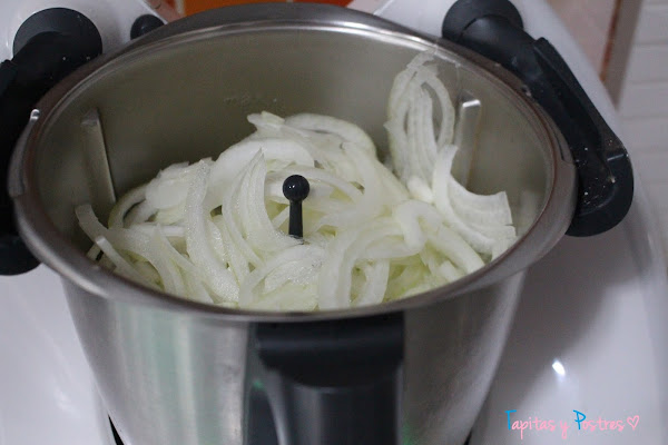 Colocamos la mariposa en la thermomix y echamos la cebolla.