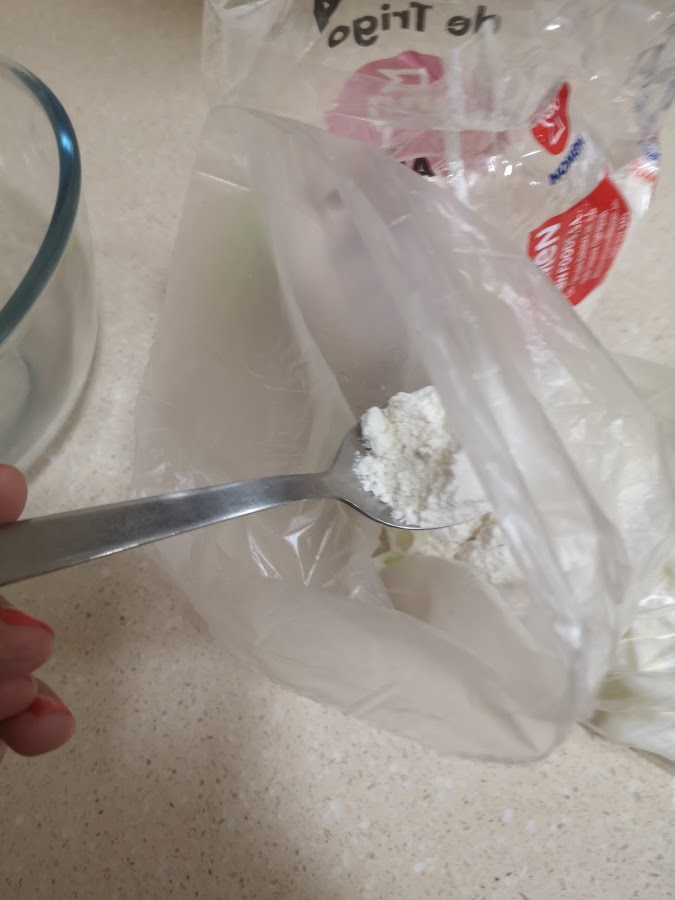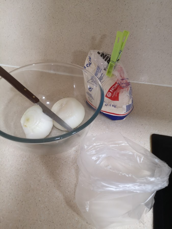 En una bolsa para alimentos poner de dos a tres cucharadas de harina y meter dentro la cebolla.