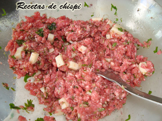 350gr de carne picada(cerdo, pollo, ternera) yo cerdo ibérico,