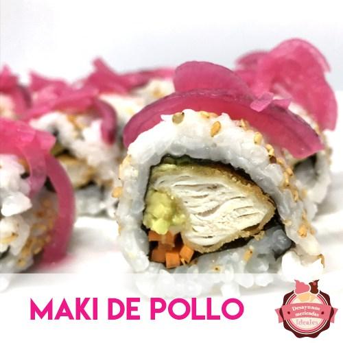 3. Makis. Preparé unos makis de pollo rebozado, aguacate y zanahoria y quedaron deliciosos con la cebolla roja.