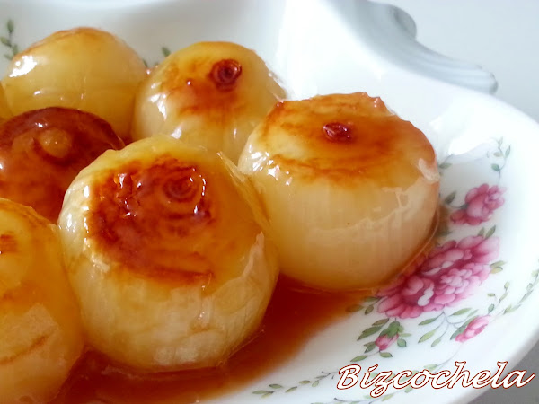 Pues vamos hoy con una receta de acompañamiento, unas CEBOLLAS GLASEADAS, que quedan estupendas para acompañar una carne y que podemos tener preparada de antemano.