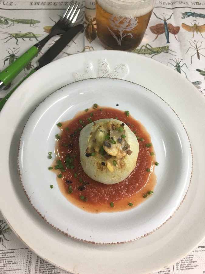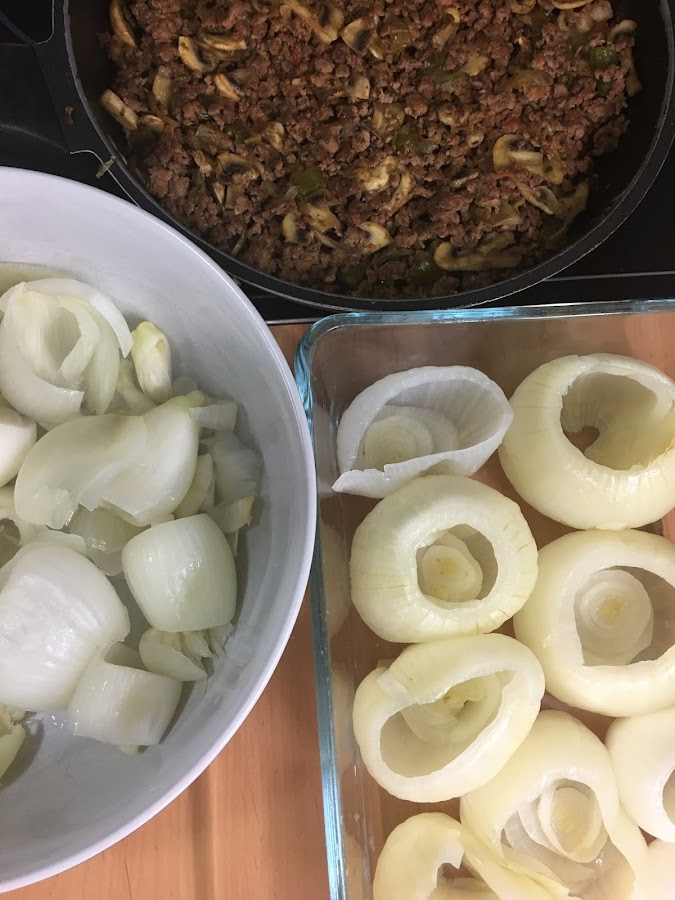 Me encanta rellenar verduras, pescados, carnes o lo que se tercie... jajaja. Suelo hacer muchas veces los tomates rellenos al horno, los pimientos, el pollo, la aleta de ternera, los chipirones... pero nunca había preparado cebollas rellenas.