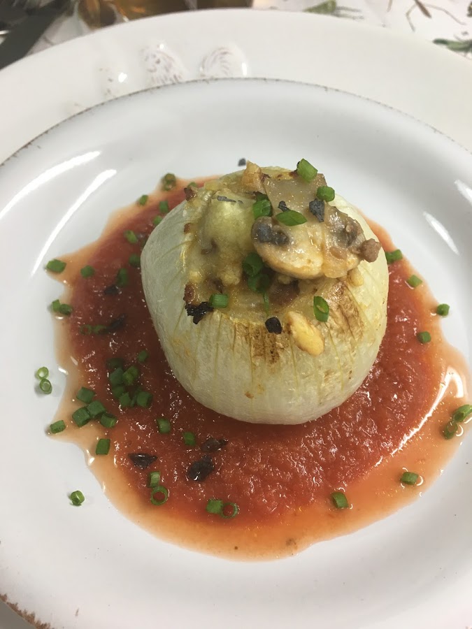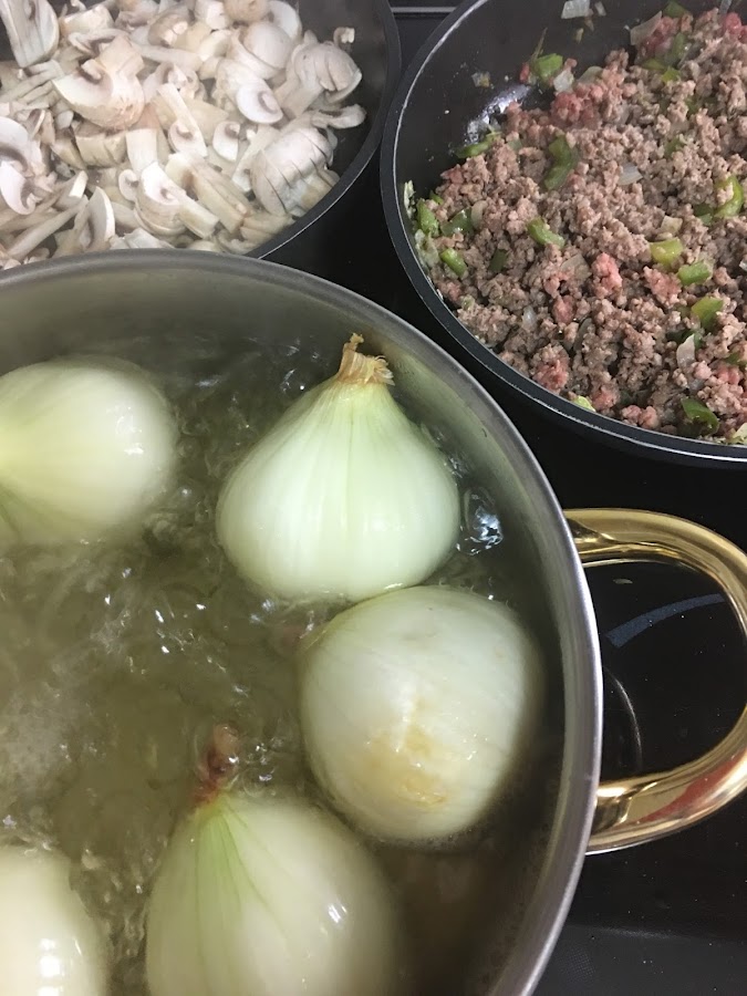 Arguñano recomienda cocer previamente las cebollas y se lo que he hecho. Él recomienda cinco minutos y yo lo hice 10 minutos. Creo que hubieran necesitado un poco más de cocción, pero no sé si a lo mejor se hubieran deshecho y hubiera sido difícil rellenarlas.