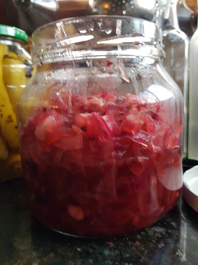 Cortá la cebollas en fina juliana, colocá en una olla con el resto de los ingredientes y cociná a fuego bajo hasta que las cebollas estén tiernas.