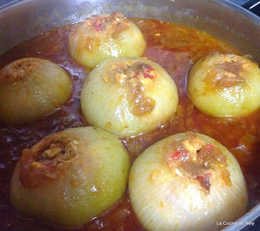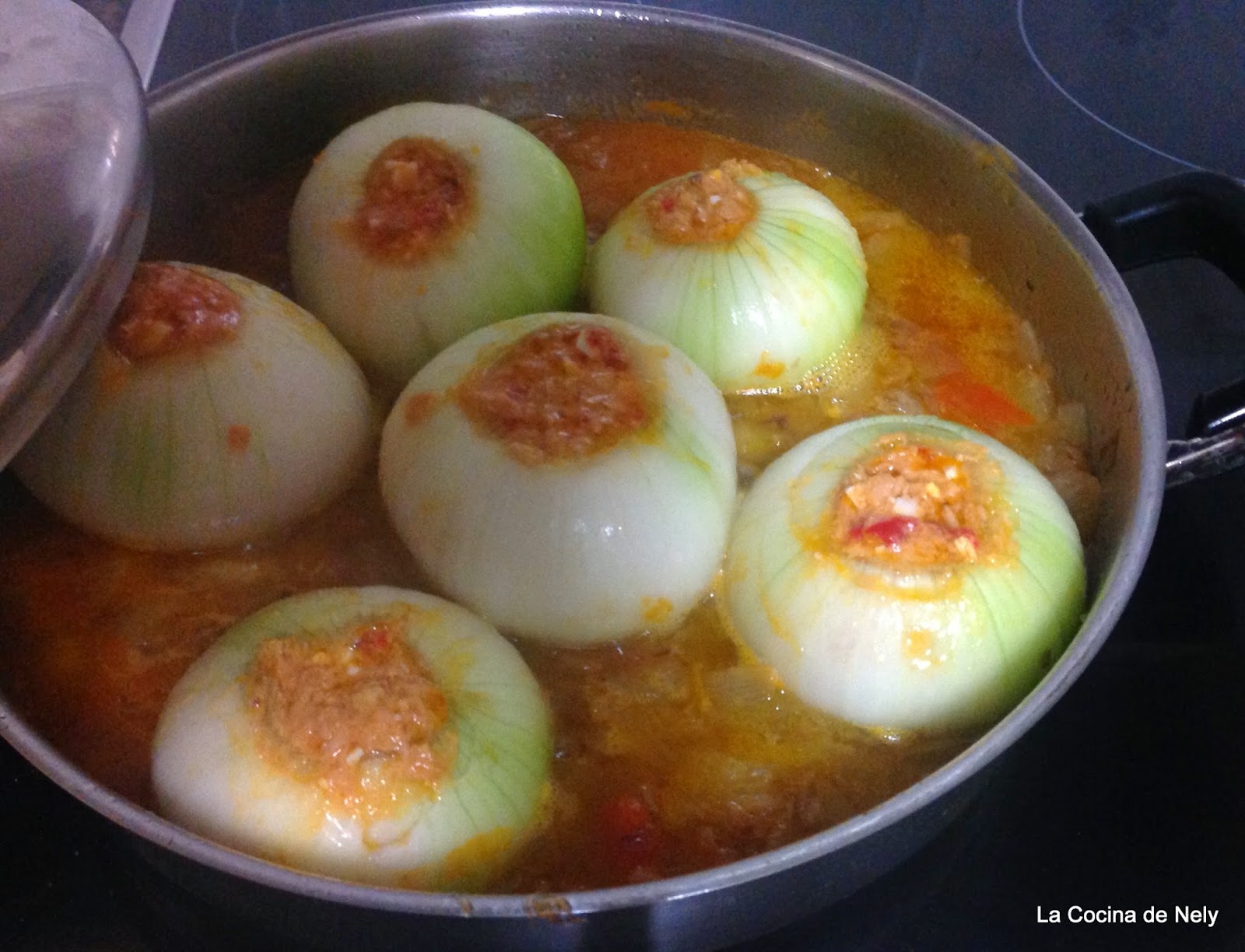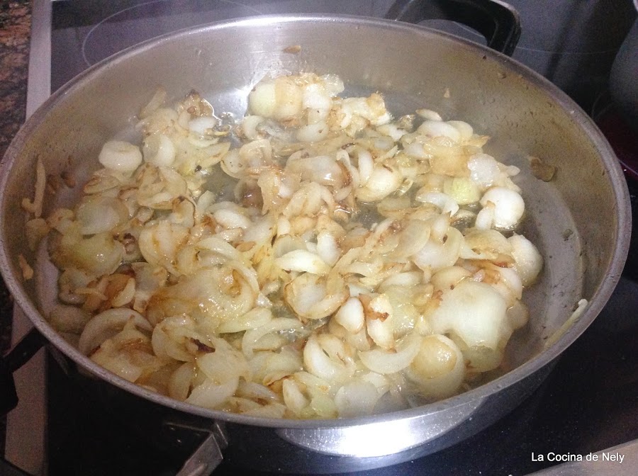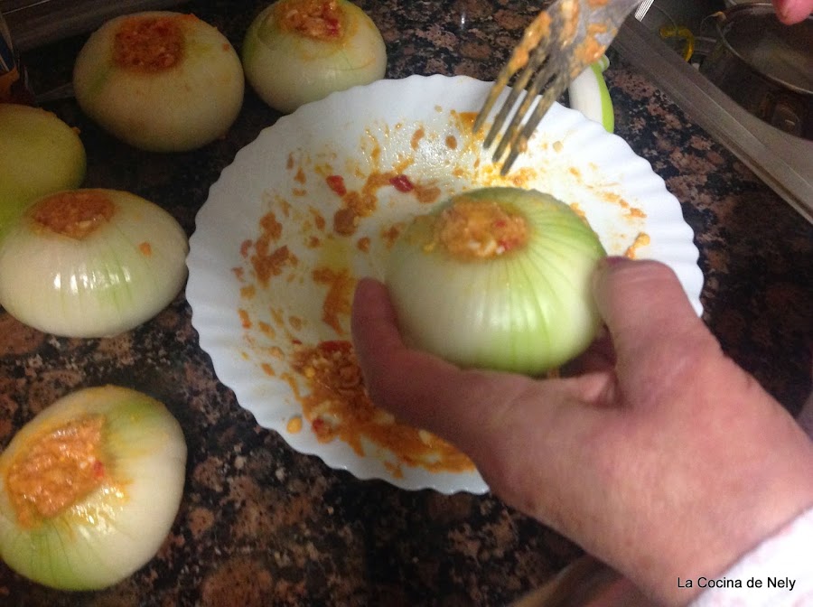 Se pelan las cebollas y se le quitan las primeras capas con cuidado de no quitarle el culo a la cebolla, sino se desacen.