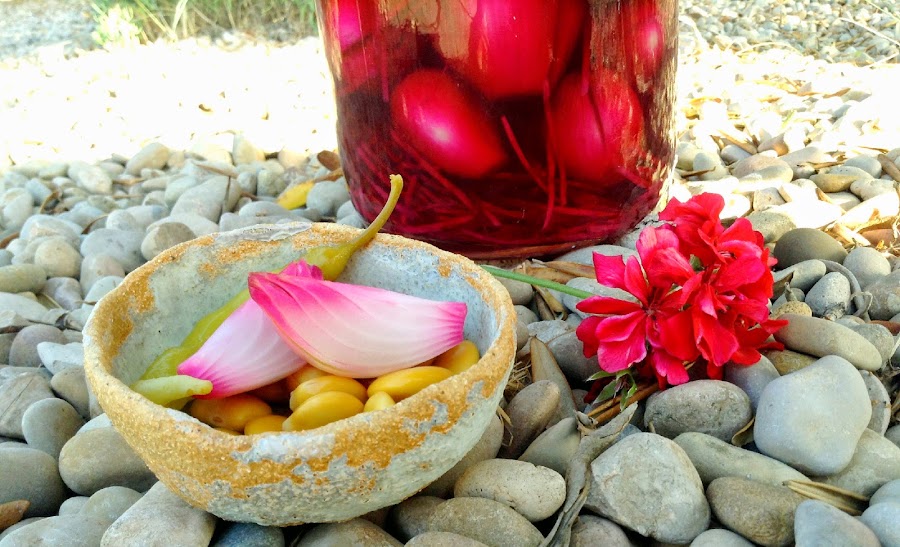 Hasta ahora en mi casa las comprábamos porque recuerdo que hace tiempo hicimos y no salieron demasiado bien, pero ¡¡hasta ahora!! Debido a la sequía que tenemos, nos han salido mini cebollas porque las pobres han pasado más sed que si estuviesen en una travesía por el Sáhara porque las hacemos de secano. El caso es que mi padre dijo "las podríamos hacer en vinagre" y me encantó la idea, así que compré una remolacha y me puse a ello.
