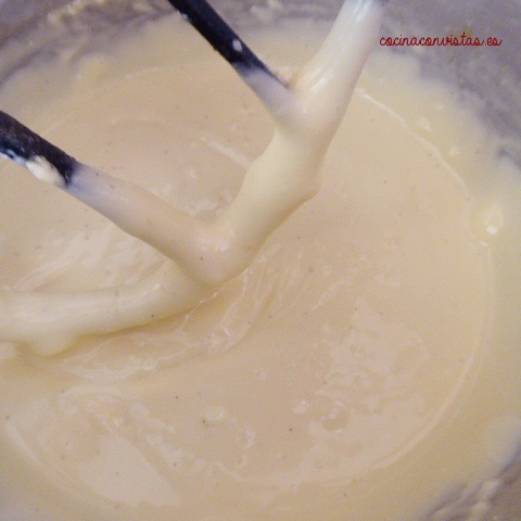 colocamos la paleta mezcladora y mezclamos a velocidad baja 5 minutos o hasta que no haya grumos.