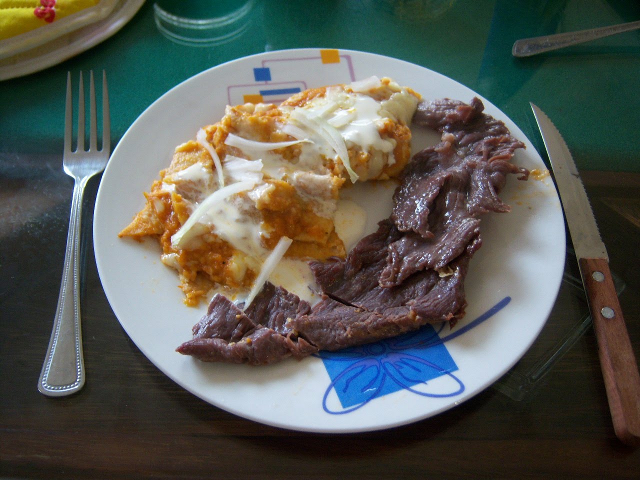 Este fue un menú rápido, lo cual no le quita lo delicioso... aunque los chilaquiles no son de lo más sencillo porq hay q freir primero las tortillitas. El chiste es la salsa, creo q nunca más volverán a salir con ese sabor tan exquisito. El truco fue utilizar lo que quedó de sopa azteca, agregar más jitomates y después quererla usar para boloñesa y arrepentirse jaja!