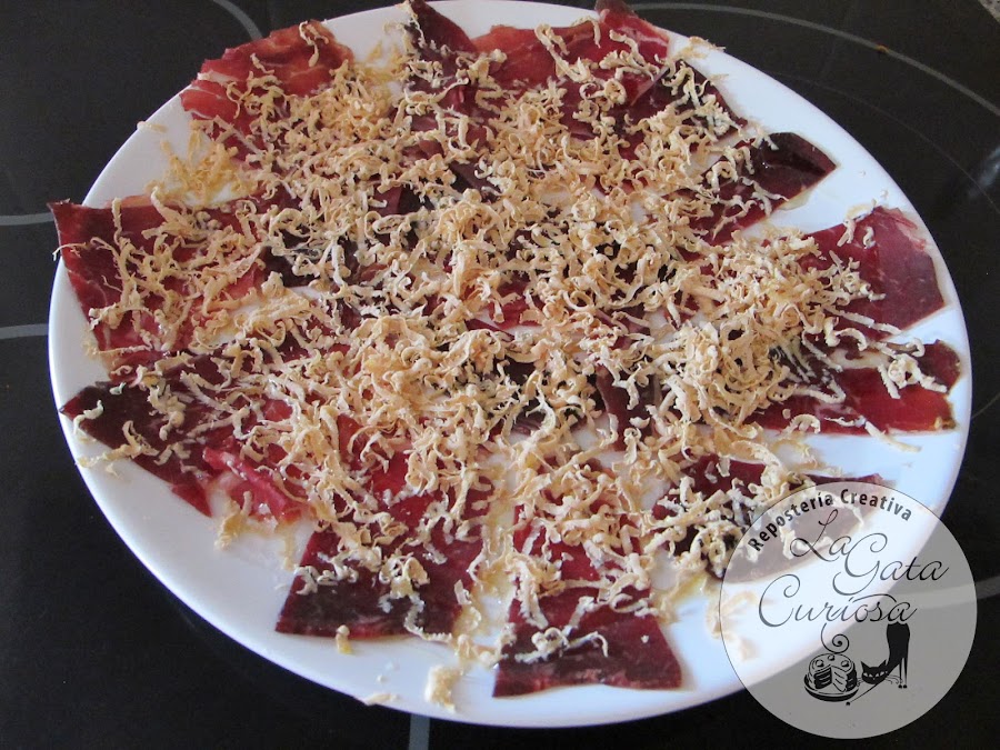 Hace unos días estuvimos de excursión en Palencia y en el restaurante que comimos nos pusieron como entrante un plato de cecina con virutas de foie, es un entrante muy sencillo pero que al mismo tiempo resulta exquisito, he querido compartirlo con vosotros porque me parece que queda muy bien y es tan fácil de hacer que no hay excusa.