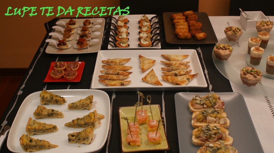 Cada año cuando celebro en casa mi santo o mi cumpleaños olvido sacar unas fotos con la mesa puesta con todos los canapés y aperitivos, algunas veces la celebración es de plato principal con un primero de canapés, pero en la mayoría de las ocasiones es solo de estos pequeños platos, aunque a fuerza de probar acaban llenando más que un principal y un primero.