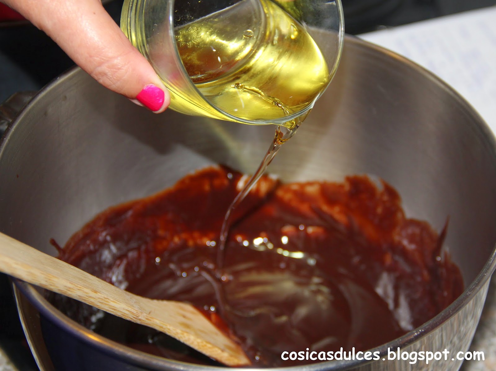 Seguidamente agregamos el aceite y mezclamos bien ayudándonos de unas varillas.